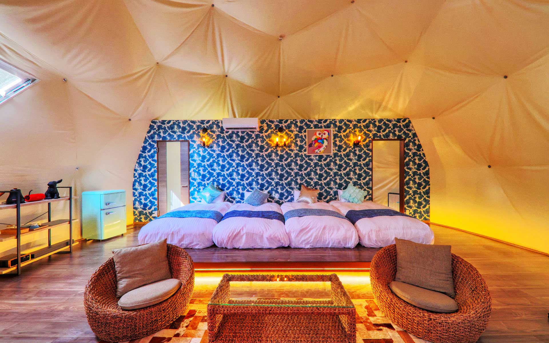 In front of Mt. Fuji, you can experience glamping, feeling the great nature, and go away from the everyday hustle and bustle.